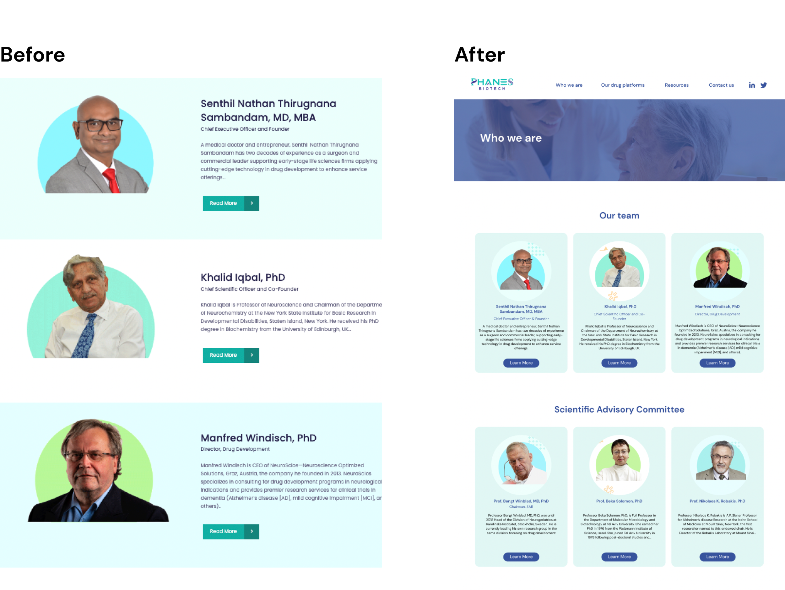I reviewed the designs with my team & the people we initially interviewed to ensure the website was easier to navigate, more visually friendly, and telling of Phanes Biotech’s purpose.