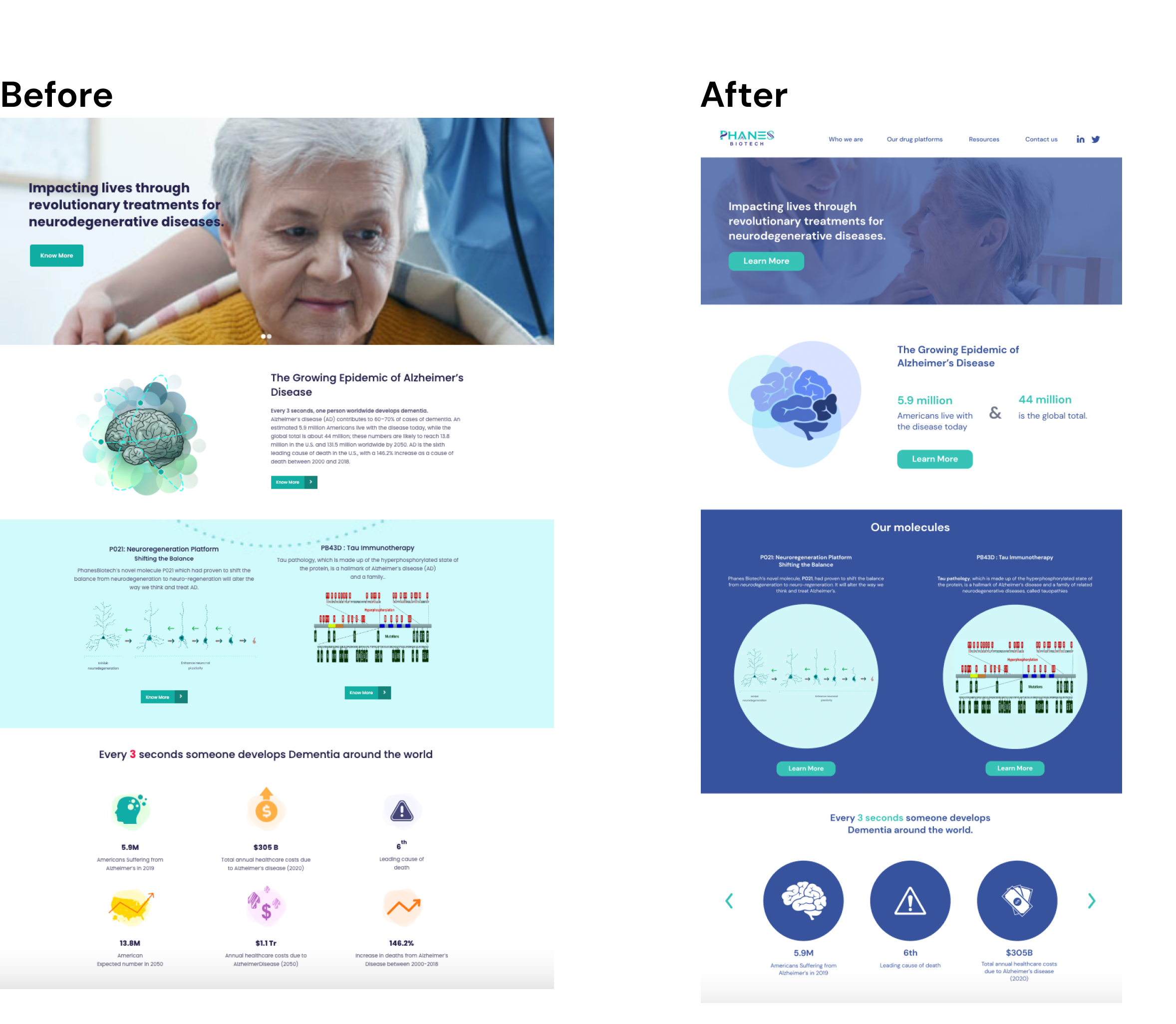 A vibrant, non-distracting color scheme & easy-to-read font that stays on brand with Phanes Biotech.
